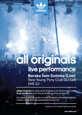 Production Assistant for Vice Client: Adidas Originals(www.adidas.com) Adidas All Originals Live Performance Madrid 2011 Adidas Originals celebró All Orginals Live Performance mediante un desfile (http://www.youtube.com/watch?v=KgZK2EW8lPo) seguido de las actuaciones en directo deBuraka Som… Sigue leyendo